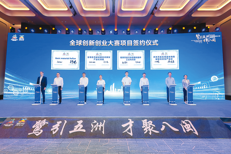 据悉,本次大赛分设数字经济、生物科技、先进制造3个赛道,共吸引全球39个国家和地区的683个项目报名,348个项目入围初赛。经过决赛激烈角逐,3个项目获得一等奖,6个项目获得二等奖,15个项目获得三等奖。大赛同步建立项目对接协调机制,举办投融资对接与项目洽谈活动,8个项目在颁奖仪式现场签约(如图),近30家投融资机构以及福建省有关地市的园区、企业等与参赛项目负责人进行面对面对接洽谈,推动大赛科创成果在福建转化落地。 (本报记者)