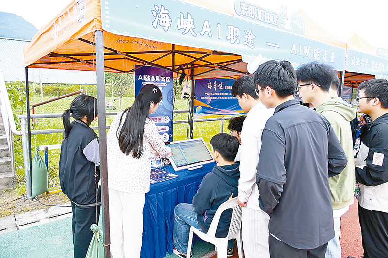 记者在招聘会现场看到,“海峡AI职途”小程序成为众多毕业生关注的焦点(如图)。求职者通过扫描二维码上传简历,系统即可基于学历、专业、意向等维度智能推送匹配岗位,极大提升了求职效率。现场设置的“AI就业一体机”根据岗位生成定制化面试题库,并从语言表达、逻辑思维等六大维度生成测评报告,帮助毕业生清晰认知自身优势与短板。
