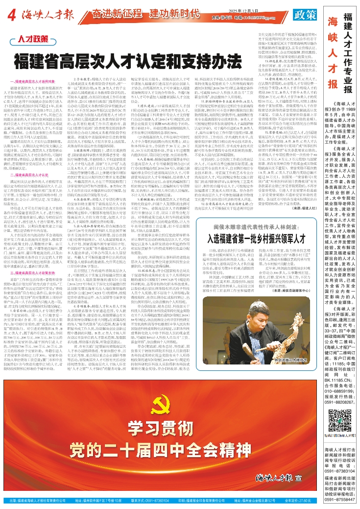 福建省高层次人才认定和支持办法