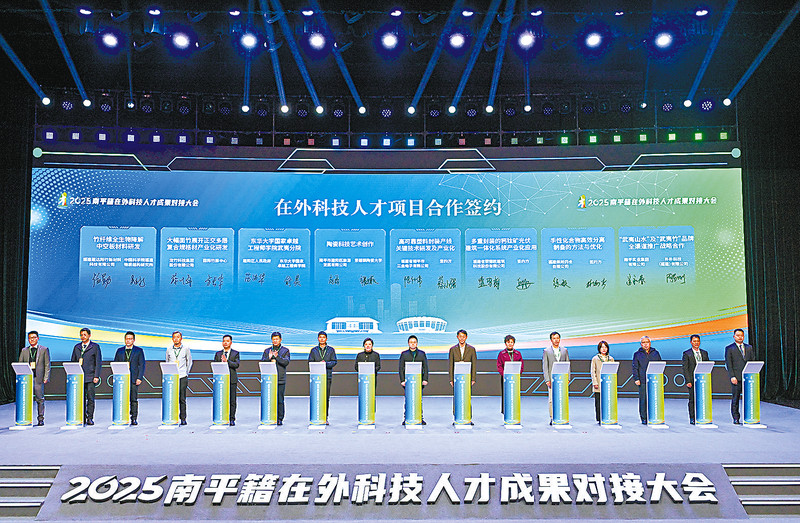 会上,23个在外科技人才项目正式签约(如图)。现场还举行了市政府科技顾问聘任仪式、“揭榜挂帅”项目发榜仪式以及福州大学国家大学科技园(浦城)等创新平台启用仪式,公布了第三批南平市科特派院士(专家)工作站,发布了南平籍在外科技人才“六心”礼遇。相关项目合作企业代表作交流发言,南平市商务局作招商推介,南平籍在外科技人才代表作技术成果分享及推介。
